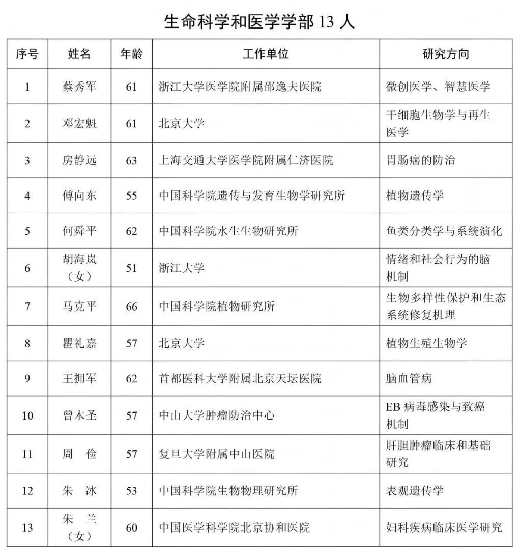 11月21日,2025年两院增选院士结果正式公布,共有144人当选。本次换届后,中国科学院院士总数为908人,外籍院士总数为173人;中国工程院院士总数1002人,外籍院士总数148人。中国科学院共选举中国科学院院士73人,中国科学院外籍院士27人,其中生命科学与医学部13人。中国工程院选举产生中国工程院院士71名,其中医学与健康学部8名。